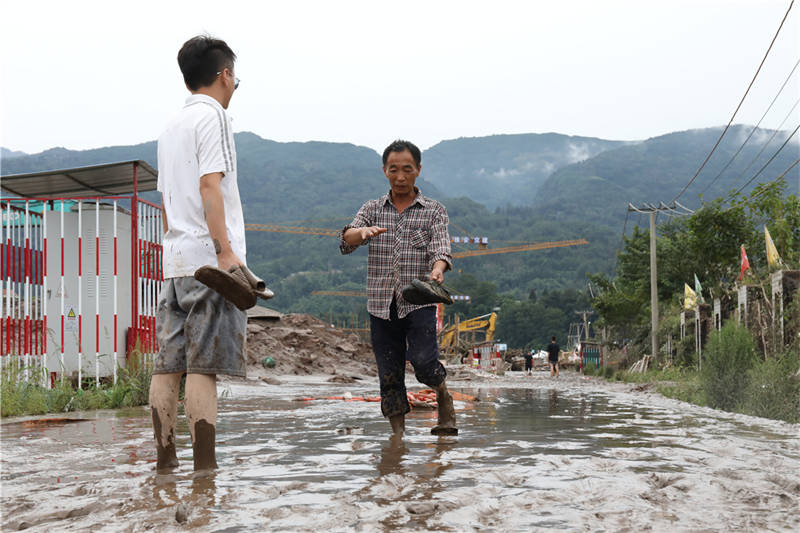 8月18日下午,在草壩青衣江大橋建設(shè)現(xiàn)場,項目部外的院壩、工地附近的道路,均覆蓋著厚厚的淤泥。“昨晚緊急撤離,我的車停在河邊,也沒來得及開走,現(xiàn)在都沒找到!币荒樒v的李勁松告訴記者,雖然洪水漲勢迅猛,但他們撤離之前,提前通知了電力部門斷電,否則若有人再次靠近洪水,將面臨觸電的風(fēng)險。