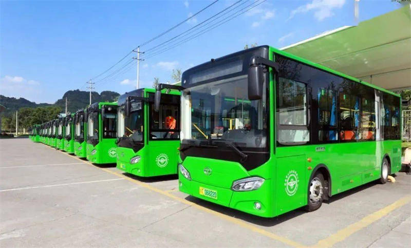 煥然一新的綠色新能源電動(dòng)公交車(chē)列裝上線(xiàn)運(yùn)營(yíng)