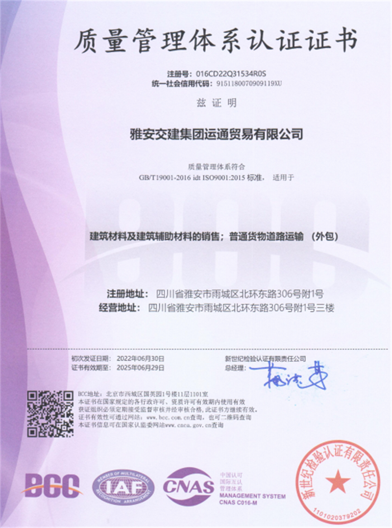 近日,經(jīng)專業(yè)認(rèn)證機構(gòu)嚴(yán)格審核,運通公司順利通過GB/T19001-2016 idt ISO9001:2015質(zhì)量管理體系標(biāo)準(zhǔn)認(rèn)證。