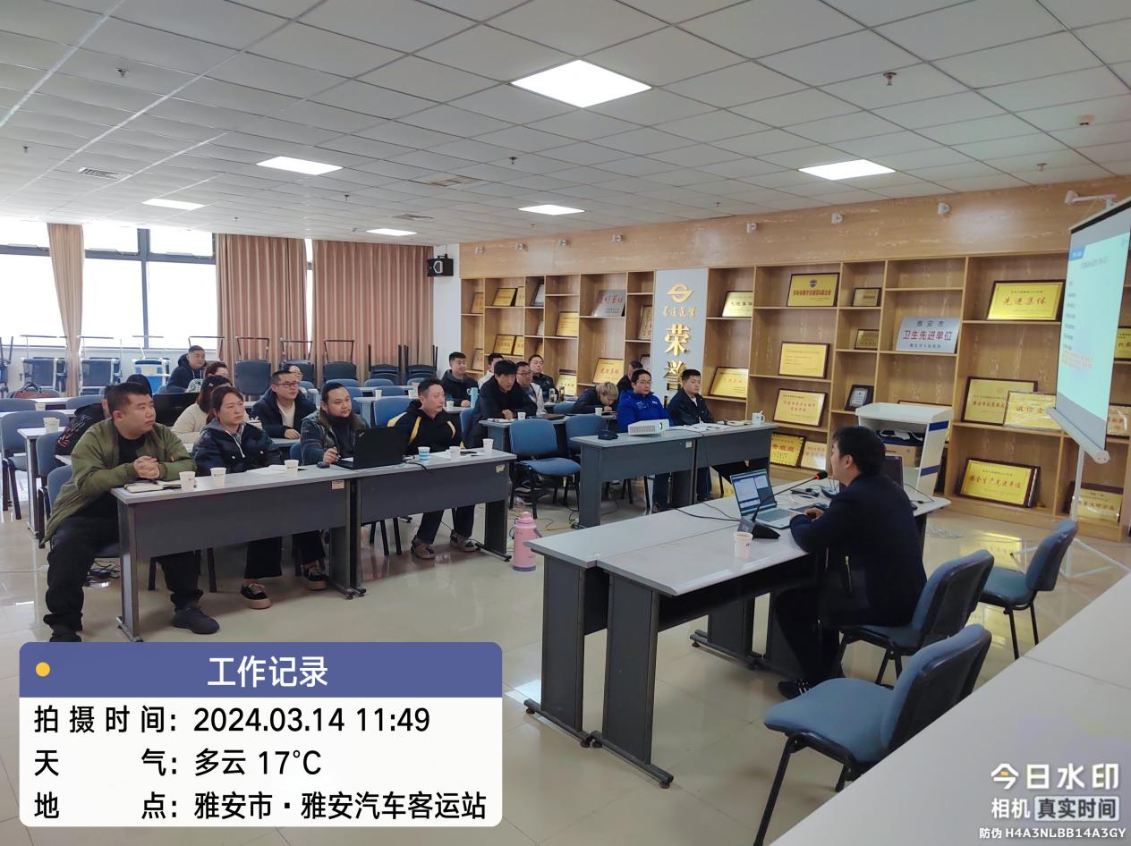 為進(jìn)一步規(guī)范營運(yùn)車輛動態(tài)監(jiān)控管理,提高動態(tài)監(jiān)控人員安全責(zé)任意識和綜合監(jiān)管能力,結(jié)合雅安市安全生產(chǎn)治本攻堅三年行動要求,2024年3月14日,蜀通公司特邀成都網(wǎng)闊公司技術(shù)工程師,對我司18名專職車輛動態(tài)監(jiān)控管理人員進(jìn)行業(yè)務(wù)培訓(xùn)。