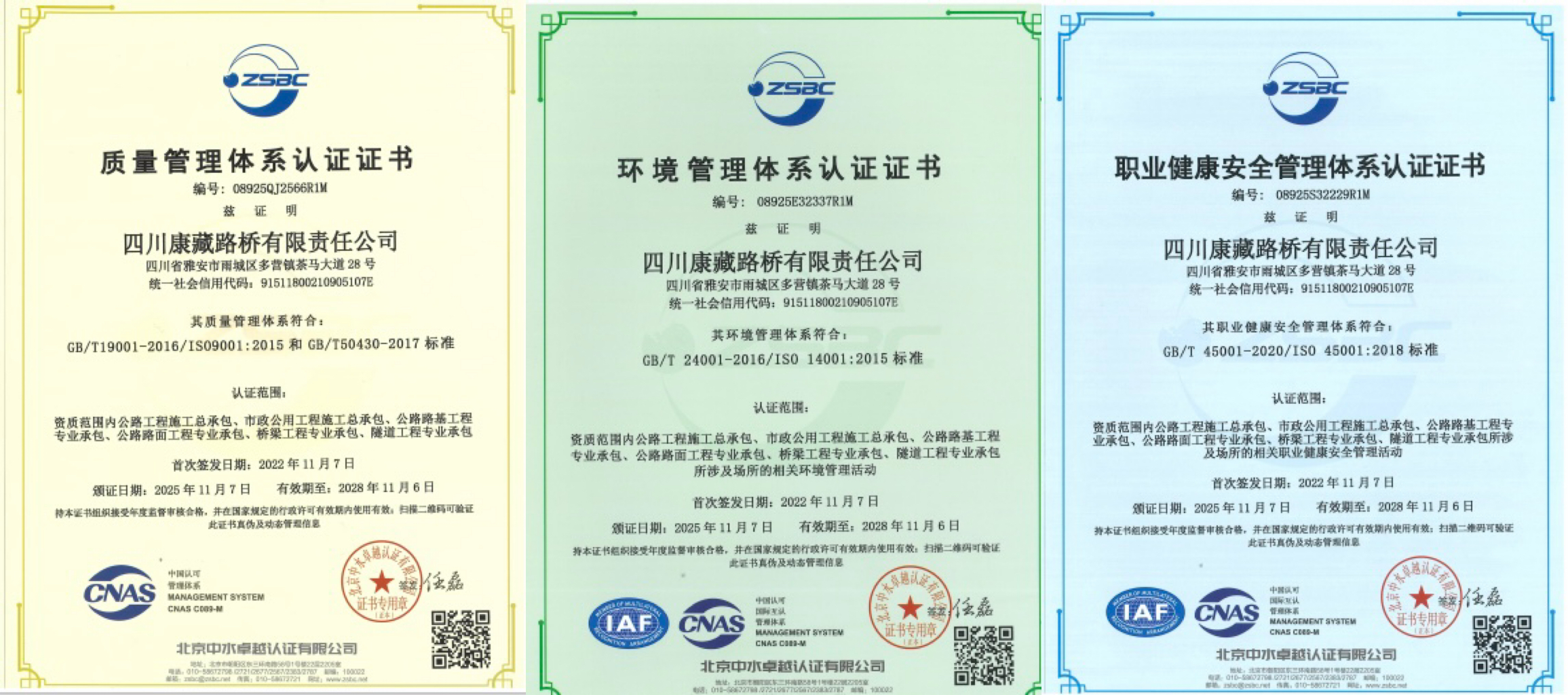 本次認(rèn)證范圍全面覆蓋公司資質(zhì)范圍內(nèi)的公路工程施工總承包、市政公用工程施工總承包,以及公路路基、路面、橋梁、隧道工程專業(yè)承包等相關(guān)業(yè)務(wù)領(lǐng)域的質(zhì)量管理活動,同時包含所涉場所的環(huán)境管理與職業(yè)健康安全管理。通過“三體系”認(rèn)證,標(biāo)志著康藏路橋公司在規(guī)范化、標(biāo)準(zhǔn)化與精細(xì)化管理方面邁出重要一步,為企業(yè)進一步拓展市場、實現(xiàn)可持續(xù)發(fā)展奠定了更加堅實的基礎(chǔ)。