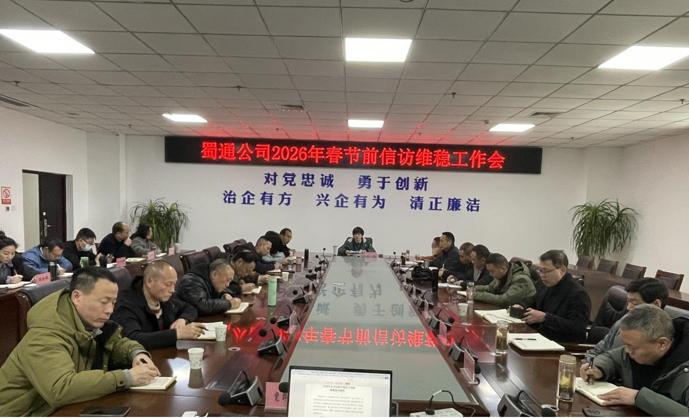 為切實做好2026年春節(jié)期間的信訪穩(wěn)定、安全生產與優(yōu)質服務工作,營造和諧、有序、平安的節(jié)日出行環(huán)境,2月6日,蜀通公司組織召開春節(jié)前信訪維穩(wěn)工作會。公司黨總支書記、董事長唐娜主持會議,領導班子成員、各部門負責人及各單位黨支部書記和責任人參加。