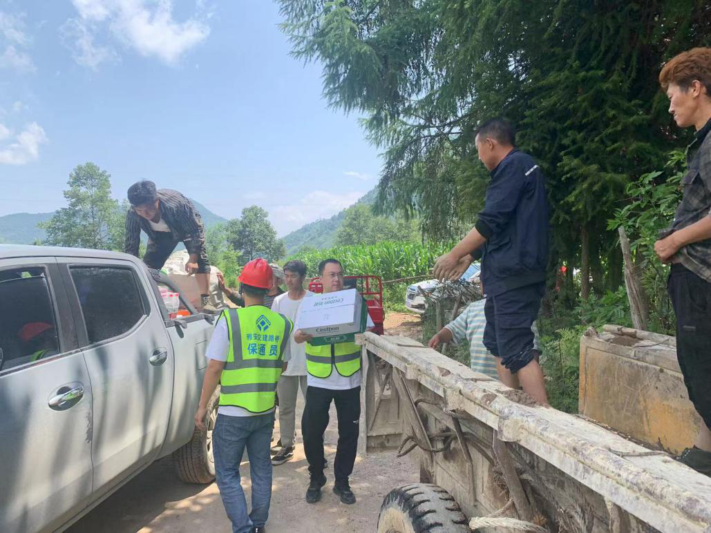雅安交建路橋獲知受災(zāi)消息后,立即就近安排石棉項(xiàng)目部主動(dòng)與甘孜州遭受暴雨侵襲當(dāng)?shù)卮逦瘯?huì)取得聯(lián)系并了解具體受災(zāi)情況,隨后及時(shí)投入2臺挖機(jī)1臺裝載機(jī)、15臺對講機(jī),人員12名,攜帶救災(zāi)生活物資(飲用水40件、方便面40件)第一時(shí)間抵達(dá)瀘定縣德托鎮(zhèn)發(fā)旺村受災(zāi)現(xiàn)場,幫助受災(zāi)村民成功脫困并協(xié)助轉(zhuǎn)移物資,開展道路恢復(fù)、河道梳理等搶險(xiǎn)救災(zāi)工作。