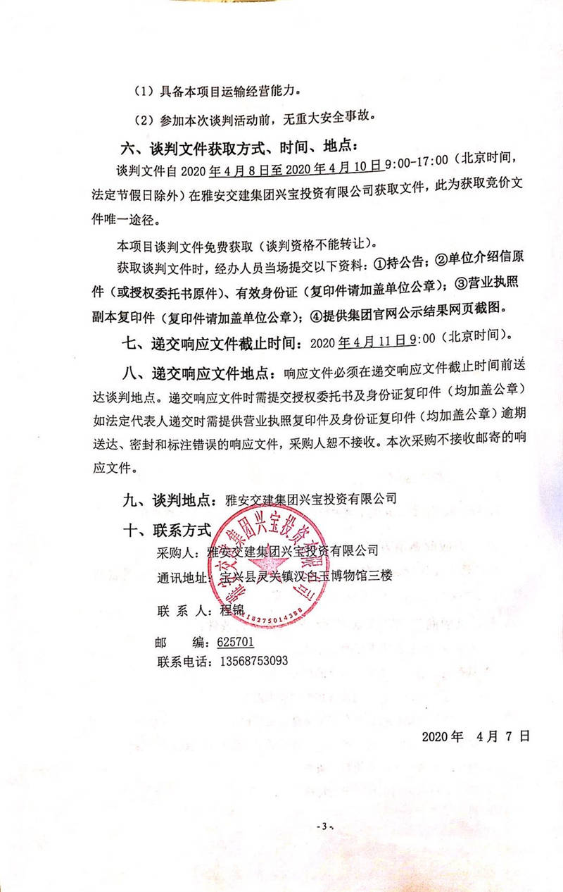雅安交建集團(tuán)興寶投資有限公司靈關(guān)鎮(zhèn)代碑寺物流園土地整理棄渣運(yùn)輸采購項目競爭性談判公告