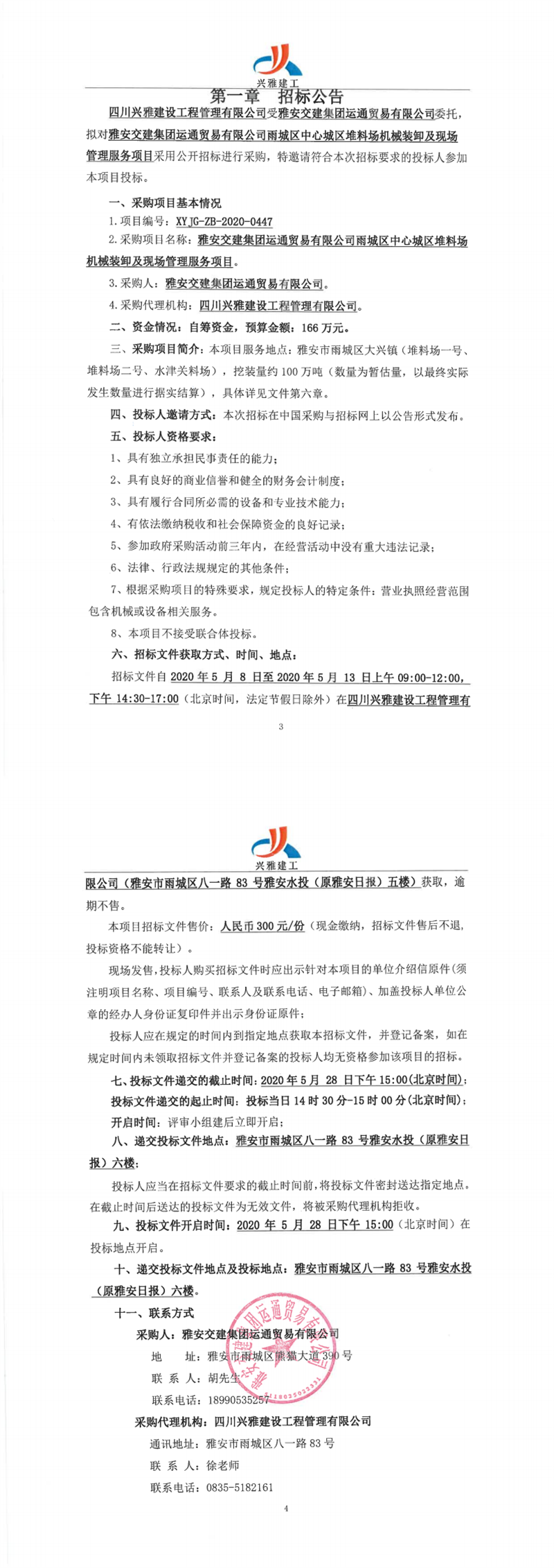 雅安交建集團運通貿(mào)易有限公司雨城區(qū)中心城區(qū)堆料場機械裝卸及現(xiàn)場管理服務(wù)項目招標(biāo)公告