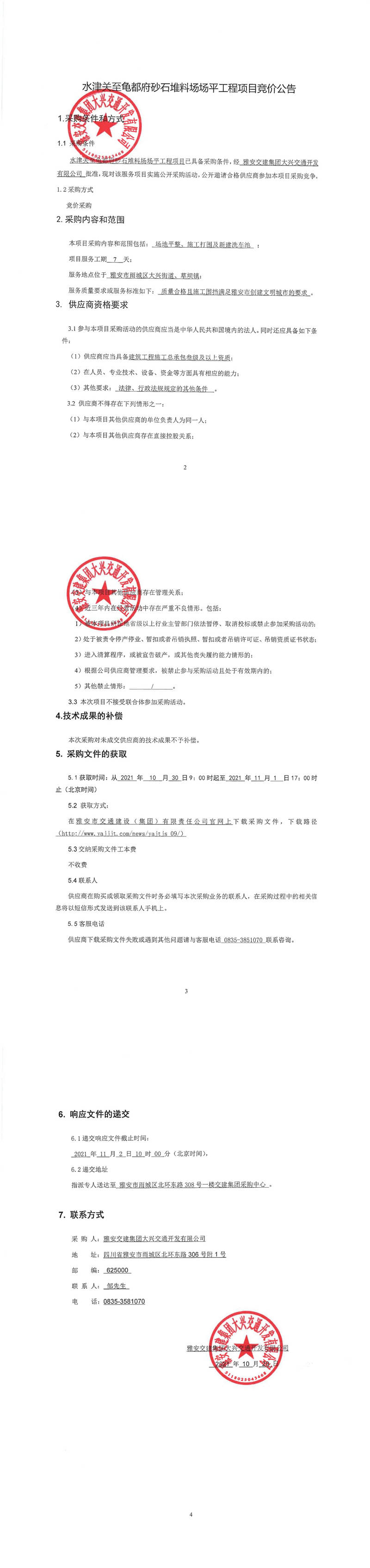 雅安交建集團(tuán)大興交通開發(fā)有限公司水津關(guān)至龜都府砂石堆料場場平工程項目競價公告