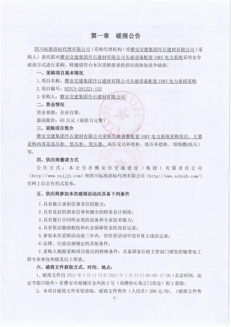 雅安交建集團丹石建材有限公司頭破設(shè)備配套10KV電力系統(tǒng)競爭磋商公告