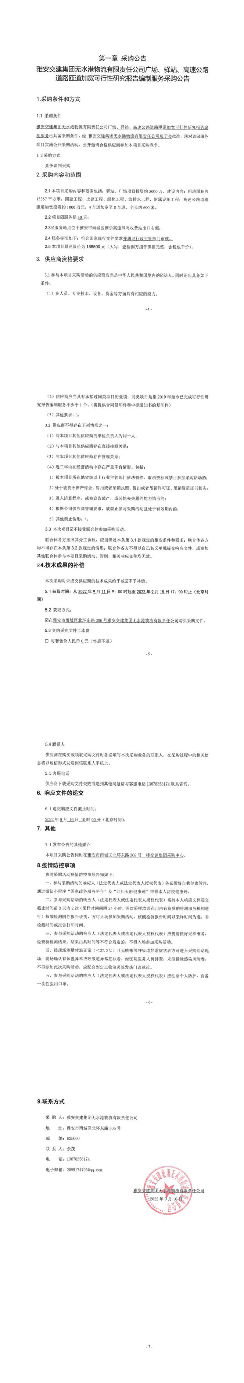 雅安交建集團無水港物流有限責(zé)任公司廣場、驛站、高速公路道路匝道加寬可行性研究報告編制服務(wù)采購公告