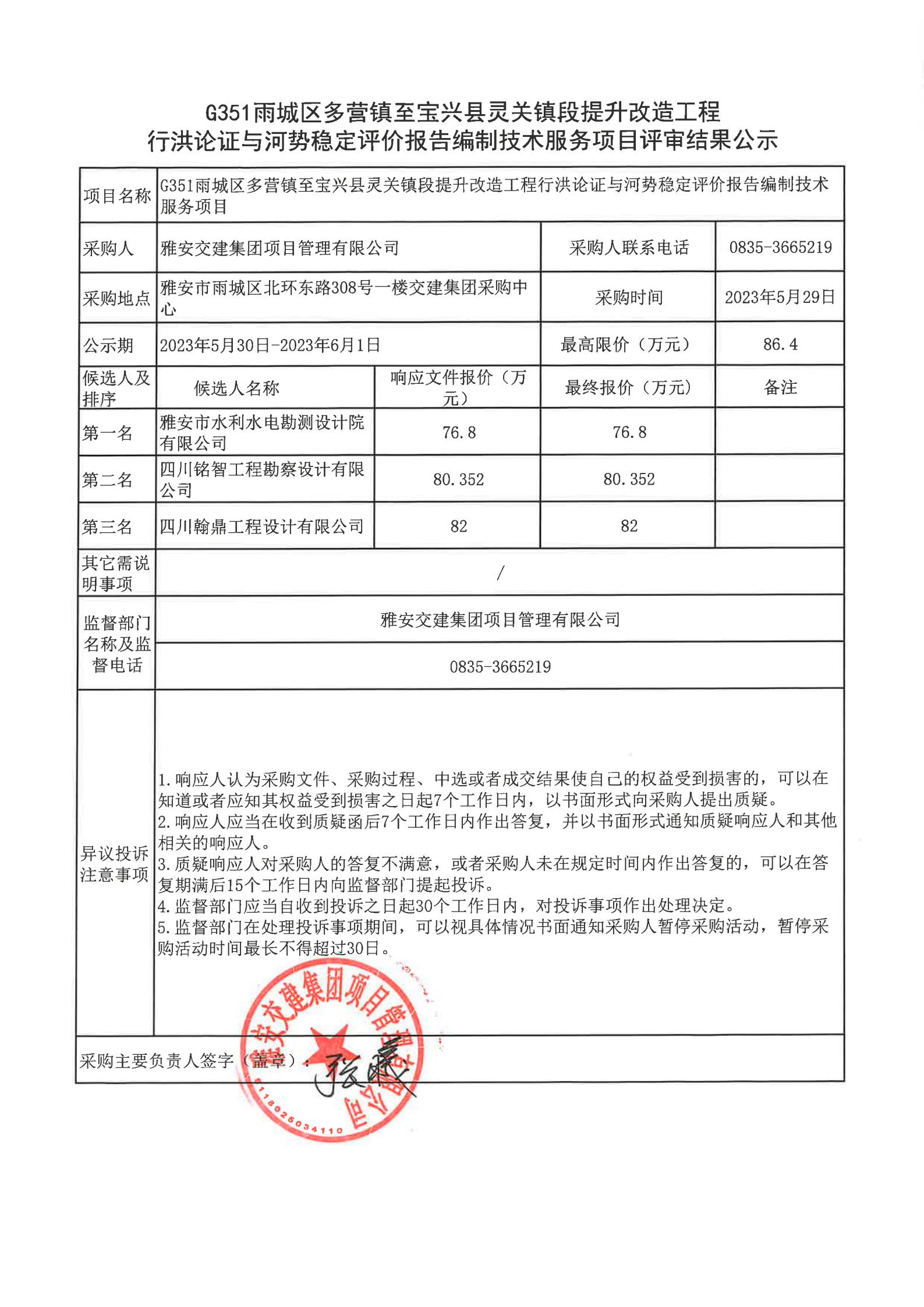 雅安交建集團(tuán)項(xiàng)目管理有限公司國道318名山區(qū)黑竹(成都界)至雨城區(qū)多營段改建項(xiàng)目桿管線遷改工程造價(jià)咨詢服務(wù)項(xiàng)目評審結(jié)果公示