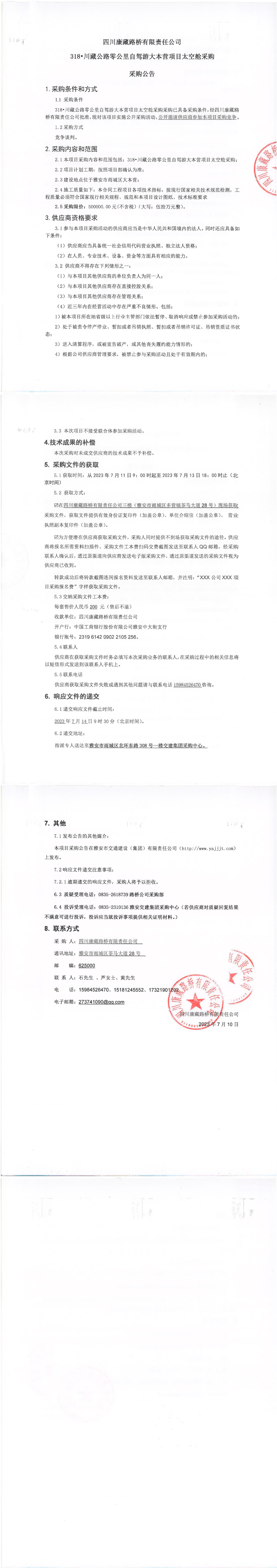 四川康藏路橋有限責(zé)任公司318·川藏公路零公里自駕游大本營項(xiàng)目太空艙采購公告