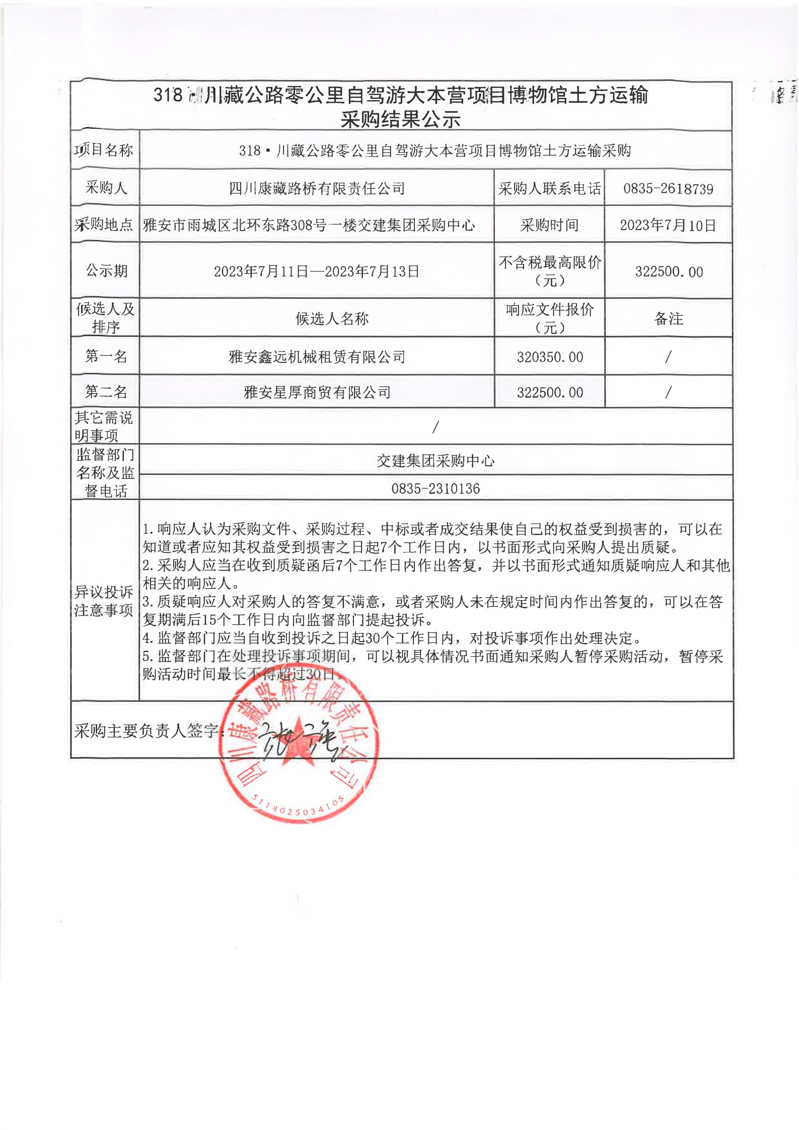 四川康藏路橋有限責任公司318·川藏公路零公里自駕游大本營項目博物館土方運輸采購結果公示