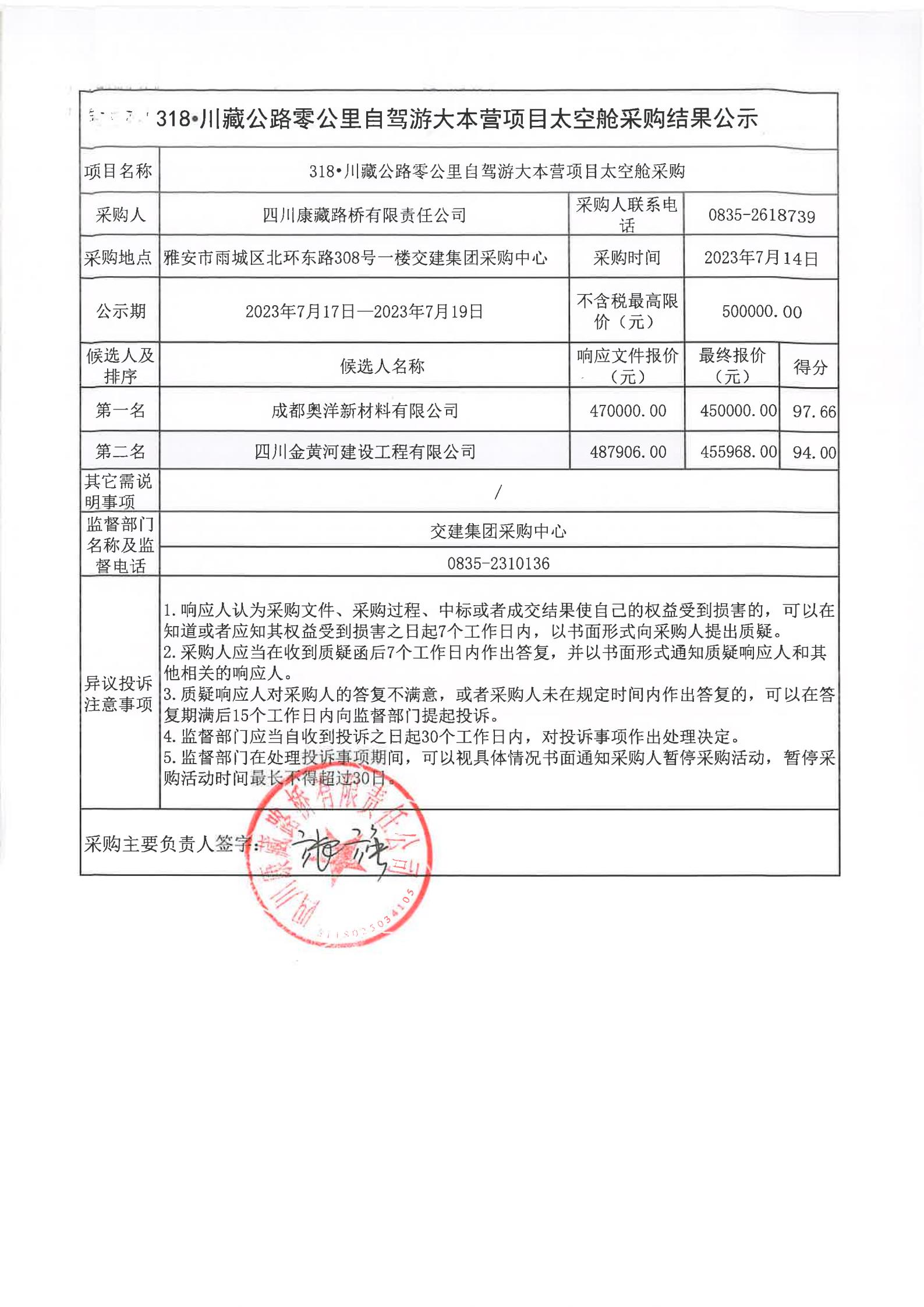 四川康藏路橋有限責(zé)任公司318·川藏公路零公里自駕游大本營(yíng)項(xiàng)目太空艙采購(gòu)結(jié)果公示