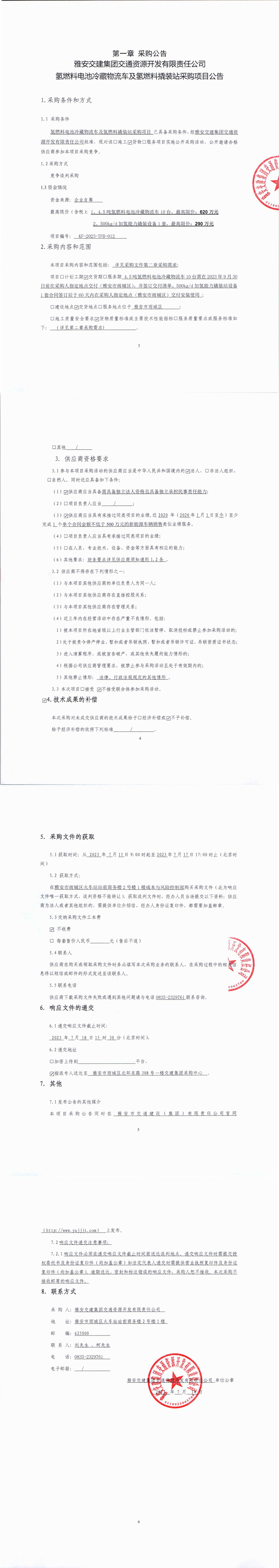 雅安交建集團交通資源開發(fā)有限責(zé)任公司氫燃料電池冷藏物流車及氫燃料撬裝站采購項目公告