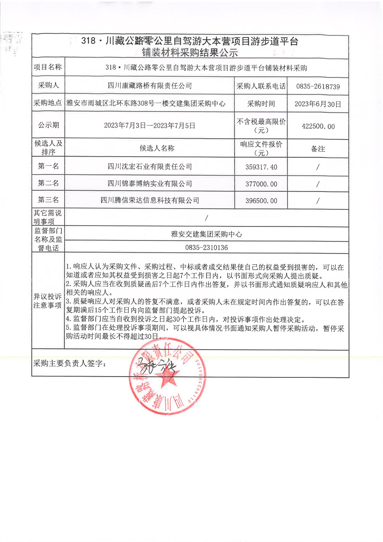 四川康藏路橋有限責任公司318·川藏公路零公里自駕游大本營項目游步道平臺鋪裝材料采購結(jié)果公示
