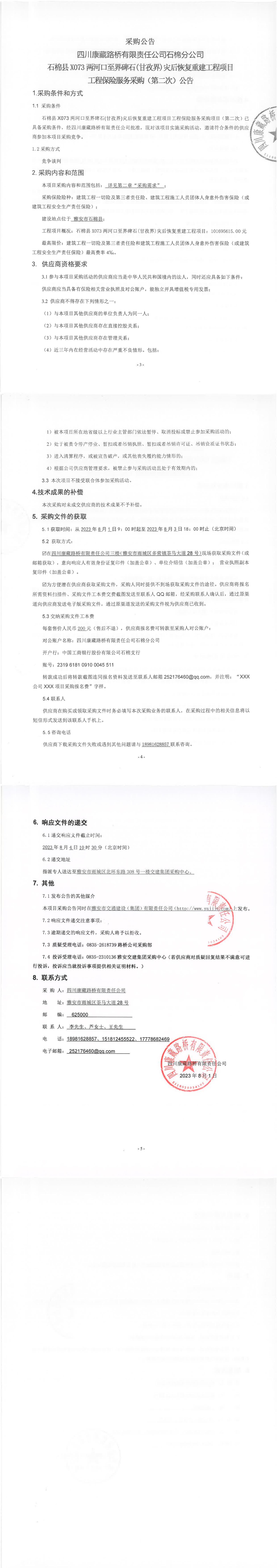 四川康藏路橋有限責任公司石棉分公司石棉縣X073兩河口至界碑石(甘孜界)災(zāi)后恢復(fù)重建工程項目工程保險服務(wù)采購(第二次)公告