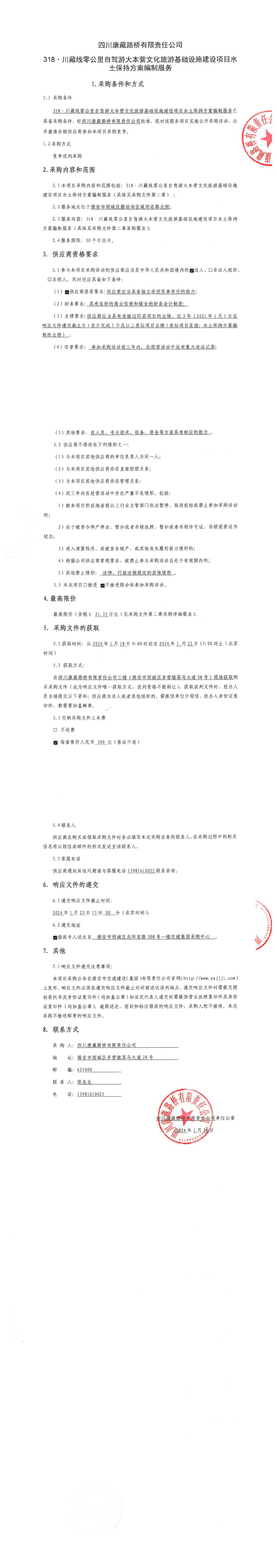 四川康藏路橋有限責任公司318·川藏線零公里自駕游大本營文化旅游基礎設施建設項目水土保持方案編制服務采購公告
