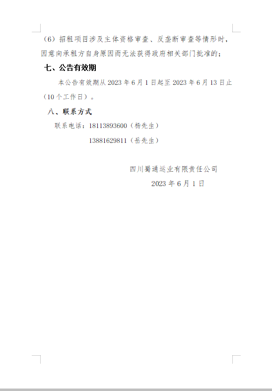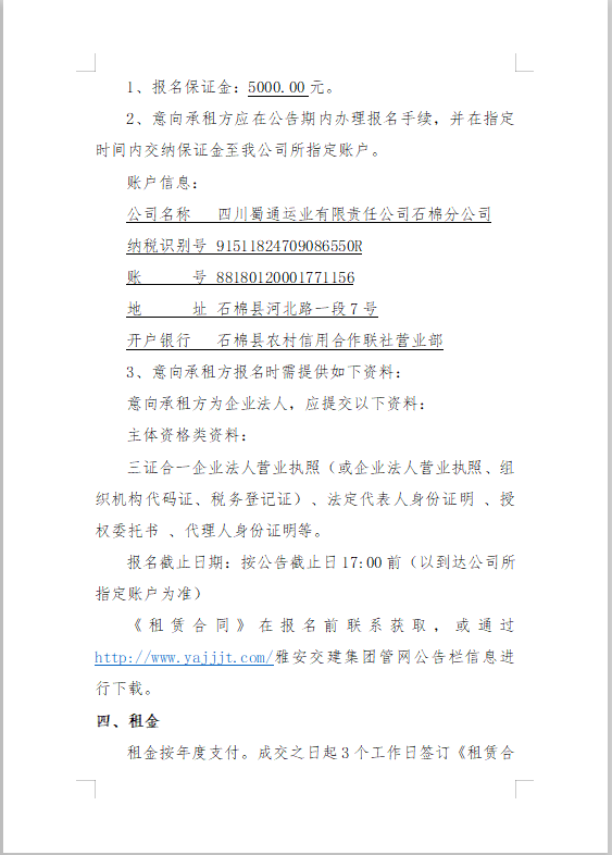 四川蜀通運(yùn)業(yè)有限責(zé)任公司關(guān)于石棉汽車站站內(nèi)商業(yè)門面資產(chǎn)公開(kāi)招租的公告