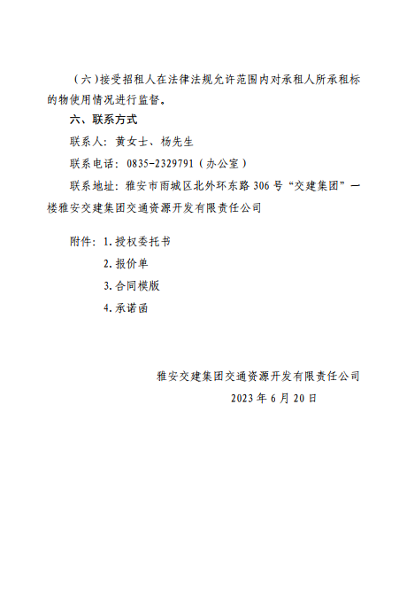雅安交建集團(tuán)交通資源開發(fā)有限責(zé)任公司雨名快速通道(名山服務(wù)區(qū))4、5號樓招租公告附件