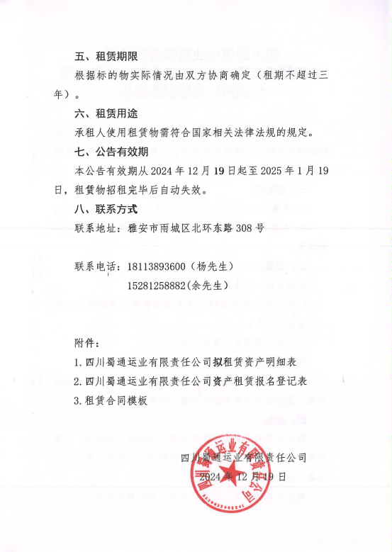 四川蜀通運業(yè)郵箱責任公司關(guān)于蜀通公司九襄汽車站候車大廳兩處場地進行掛網(wǎng)招租的公告附件