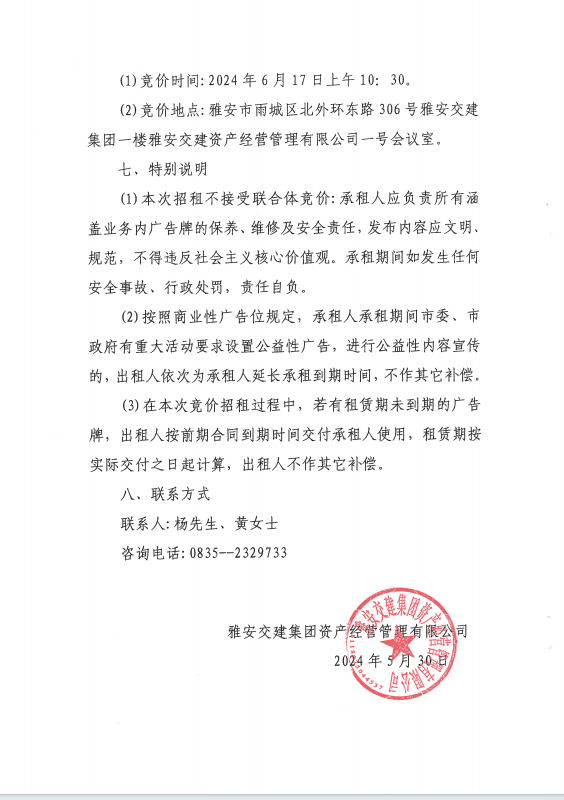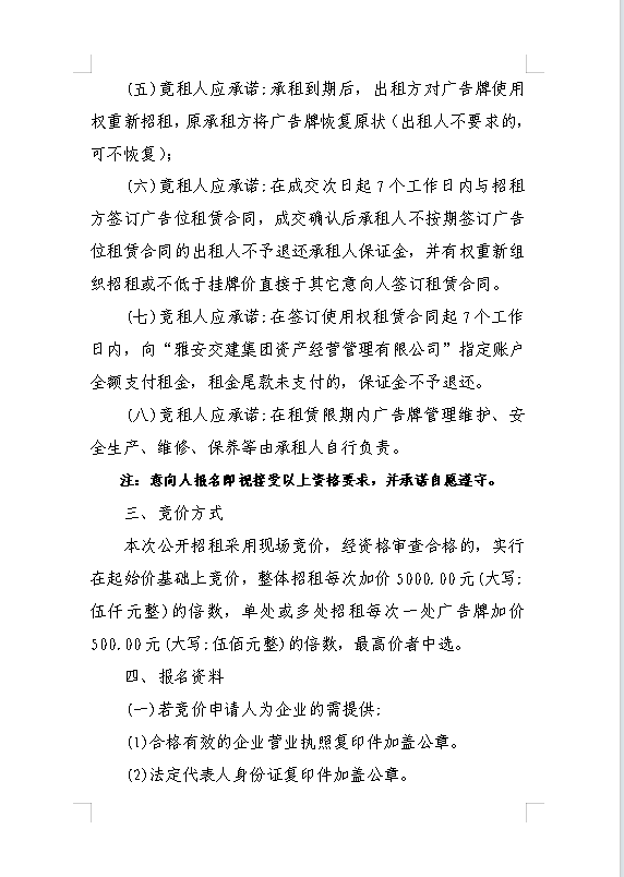 雅安交建集團(tuán)資產(chǎn)經(jīng)營(yíng)管理有限公司關(guān)于戶(hù)外廣告位競(jìng)價(jià)招租的公告