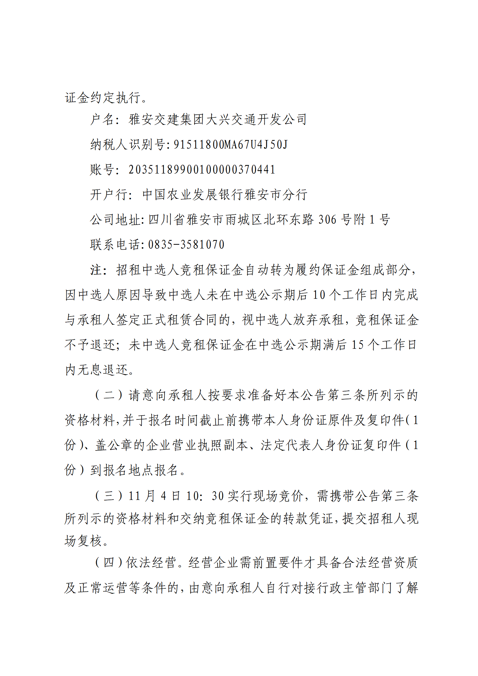 雅安交建集團大興交通開發(fā)公司 雅安市城市綜合停車場姚橋綜合停車場及配套用房招租公告