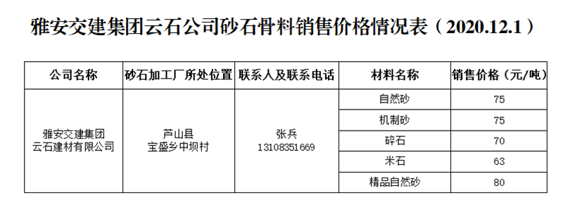 ÑŰ²½»½¨¼¯ˆF(tu¨¢n)ÔÆÊ¯¹«Ë¾É°Ê¯¹ÇÁÏäNÊÛƒr(ji¨¤)¸ñÇé›r±í£¨2020.12.1£©