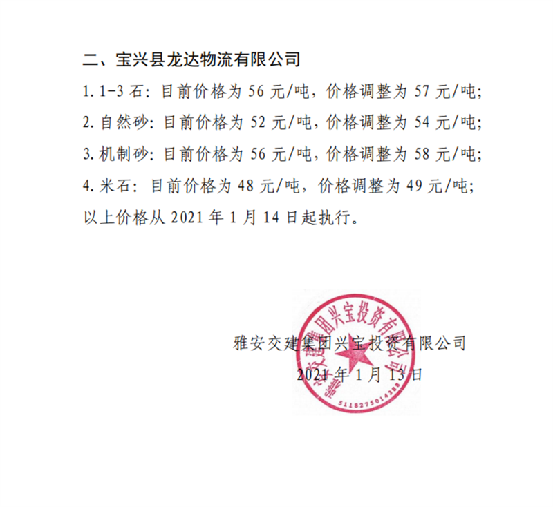 ÑŰ²½»½¨¼¯ˆFÅdŒš¹«Ë¾É°Ê¯¹ÇÁÏäNÊÛƒr¸ñÇé›r±í£¨2021.1.14£©