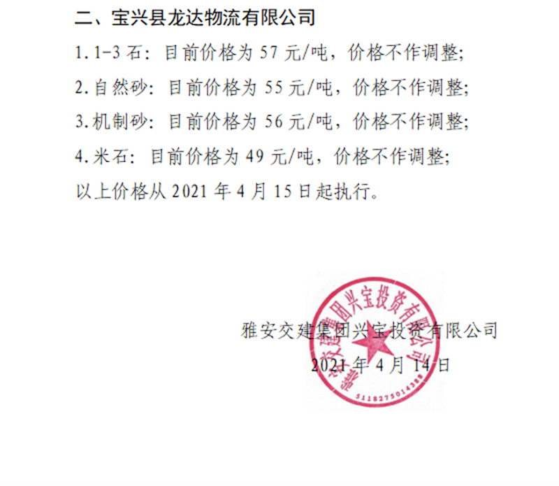 ÑŰ²½»½¨¼¯ˆF(tu¨¢n)ÅdŒš¹«Ë¾É°Ê¯¹ÇÁÏäNÊÛƒr(ji¨¤)¸ñÇé›r±í£¨2021.4.15£©