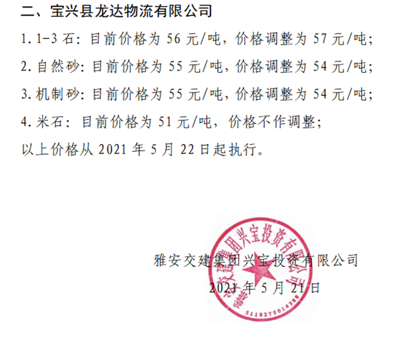 ÑŰ²½»½¨¼¯ˆFÔÆÊ¯¹«Ë¾É°Ê¯¹ÇÁÏäNÊÛƒr¸ñÇé›r±í£¨2021.5.14£©